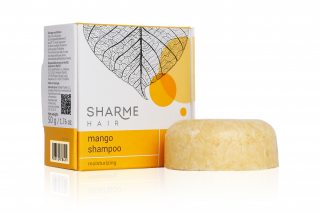 Sharme Hair Mango infused with a hint of tropical fragrance is a natural shampoo in a solid form with mango butter and betaine that delicately cleanses and intensively moisturizes dry hair.